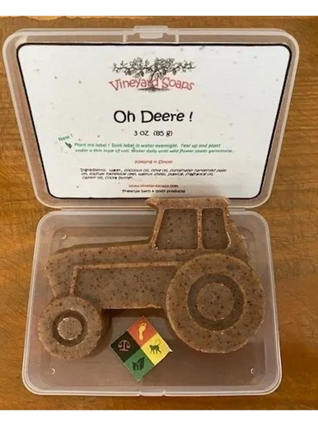 Oh Deere! (mechanic's soap) - My brother-in-law loves this soap. Cleans, but does not dry your skin out. Nice fragrance that suits both the mechanic and the gardener. Great for smoothing out those callouses on hands and heels!